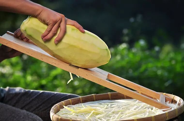 新鲜的青木瓜切成均匀的丝状,晒干后挑选、腌制、配酱料等等,再低温发酵,灭菌包装,才能让美味长久,口感不变。无添加的木瓜丝,才配得到人们的真爱。